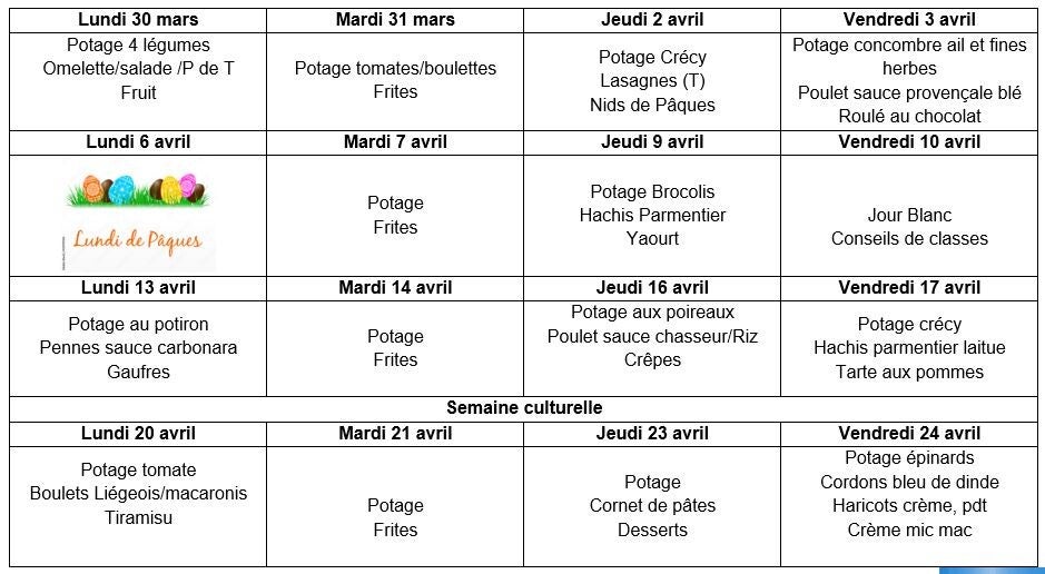 Menus d'avril 2026: